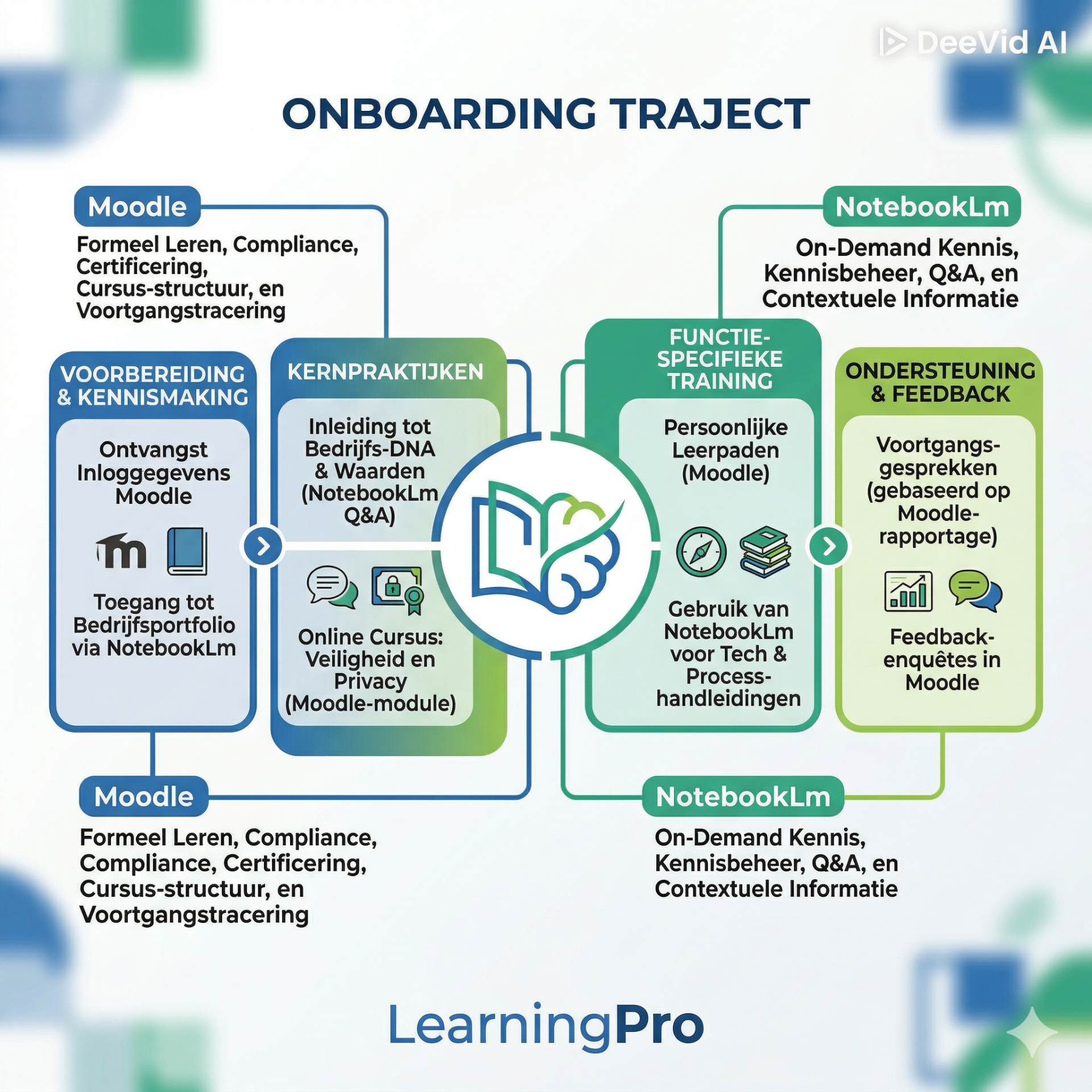 De eerste weken van een nieuwe medewerker zijn cruciaal. Een sterke onboarding verhoogt niet alleen de productiviteit, maar ook de retentie. Toch worstelen veel organisaties met dezelfde uitdaging: hoe bieden we nieuwe talenten de juiste informatie, op het juiste moment, zonder hen te overspoelen? Het antwoord ligt in de slimme combinatie van een krachtig Learning Management System (LMS) zoals bijvoorbeeld Moodle, en de revolutionaire AI-kracht van bijvoorbeeld Google's NotebookLM.